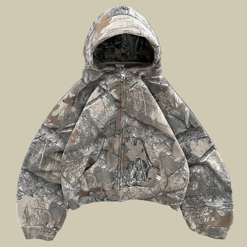 Introducing the Collective Oversized Retro Zip Up Hoodie in Camouflage Pattern—a bold, comfortable layering piece for streetwear fans who crave retro style and easy everyday wear.