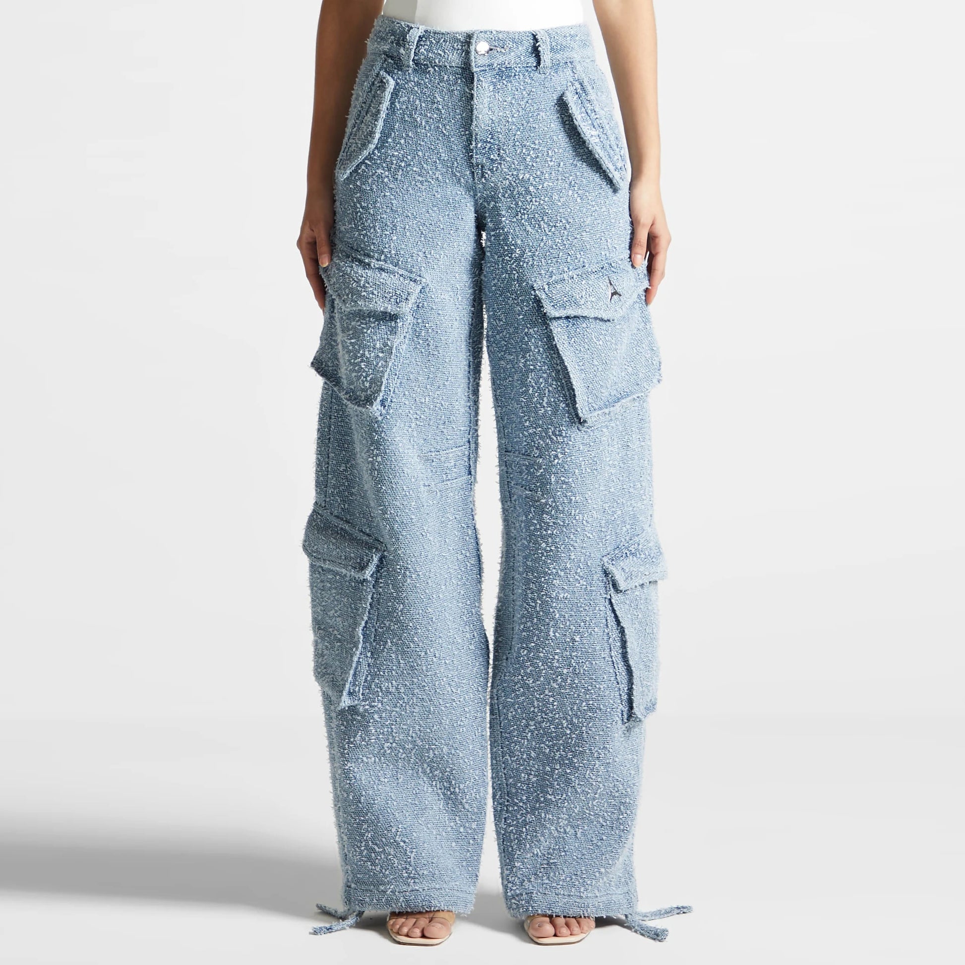- Distressed detailing adds edge and texture to casual outfits.
